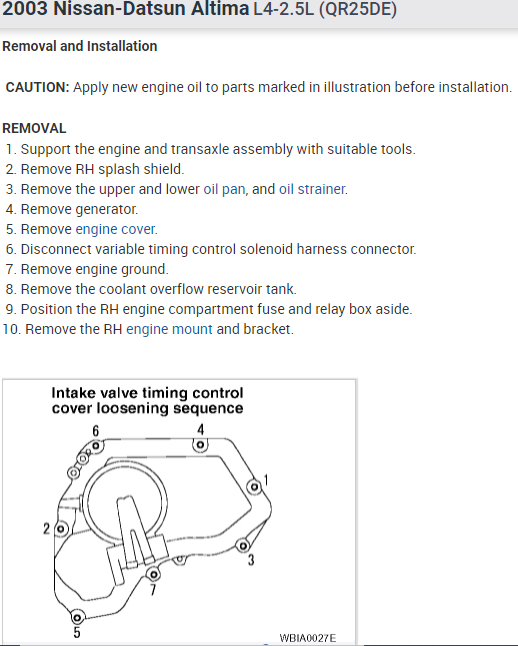 2003 Nissan Altima Code P0345 Cam Shaft Postion...