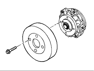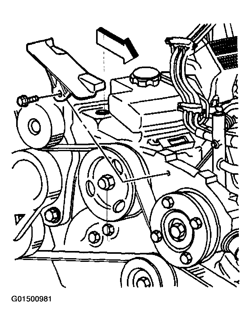 6. Install the drive belt. Tighten the water pump pulley bolts to 25 Nm (18 inch lbs.).
