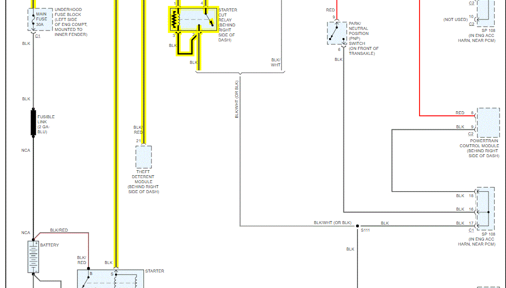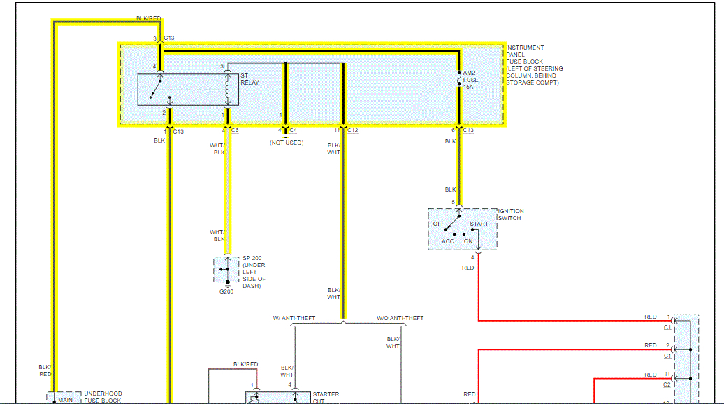 No problem, when the car is in start/ignition position the black wire has 12V on it. Also when the car is in ignition position the motor side of the solenoid has 12V on it too but no start/turn over.