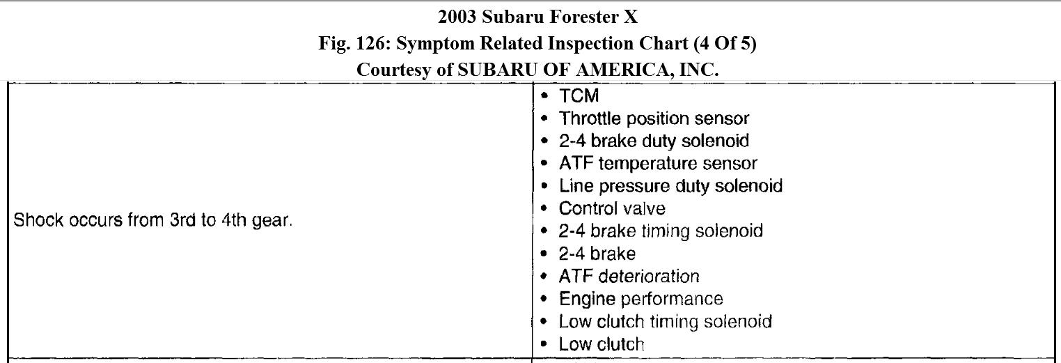 I live in Turkey and my car is subaru forester 2.0 xt at. I have a problem. When I drive 40-70 miles per hour and 4 th gear, and I push the accelarter, I sense big shock, after little delay my car is going normal. I tried to 3 th gear in same speed range, but I didn't sense any shock hesitage or like that. So everything is ok. But only in 4 th gear, I have a shock or hesitage problems. I changed AT oil and checked all valves about automatic transmissions. What is your suggestion to me?