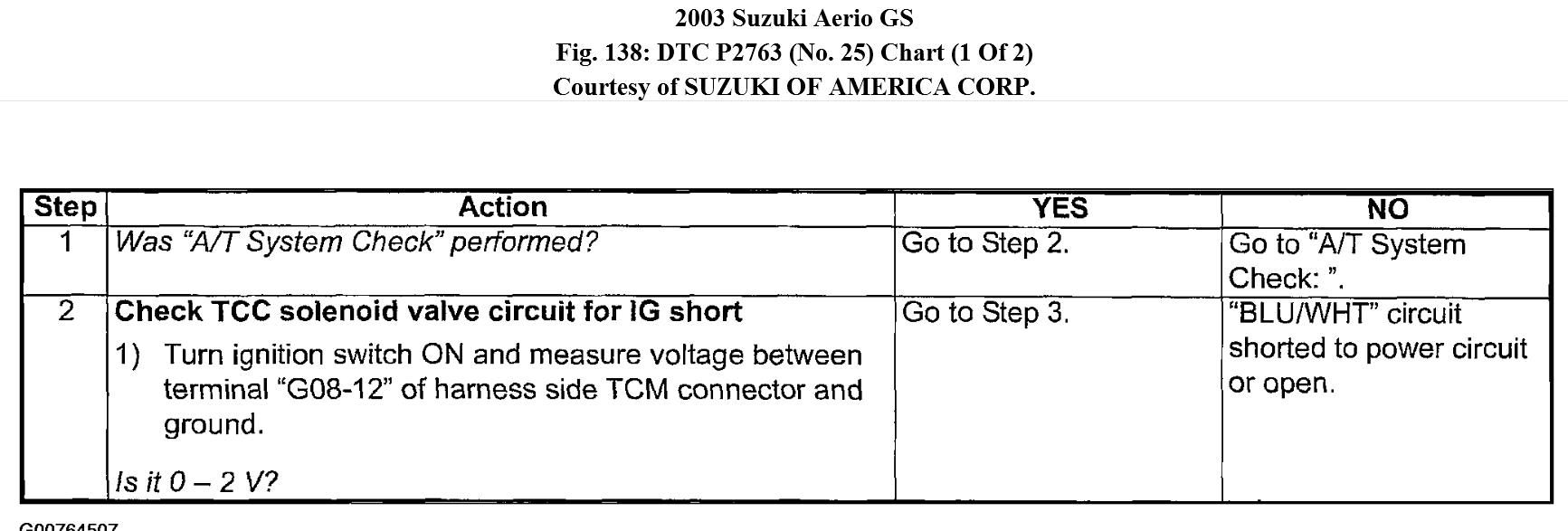 DTC P2763 (NO. 25): TCC PRESSURE CONTROL SOLENOID CONTROL CIRCUIT LOW