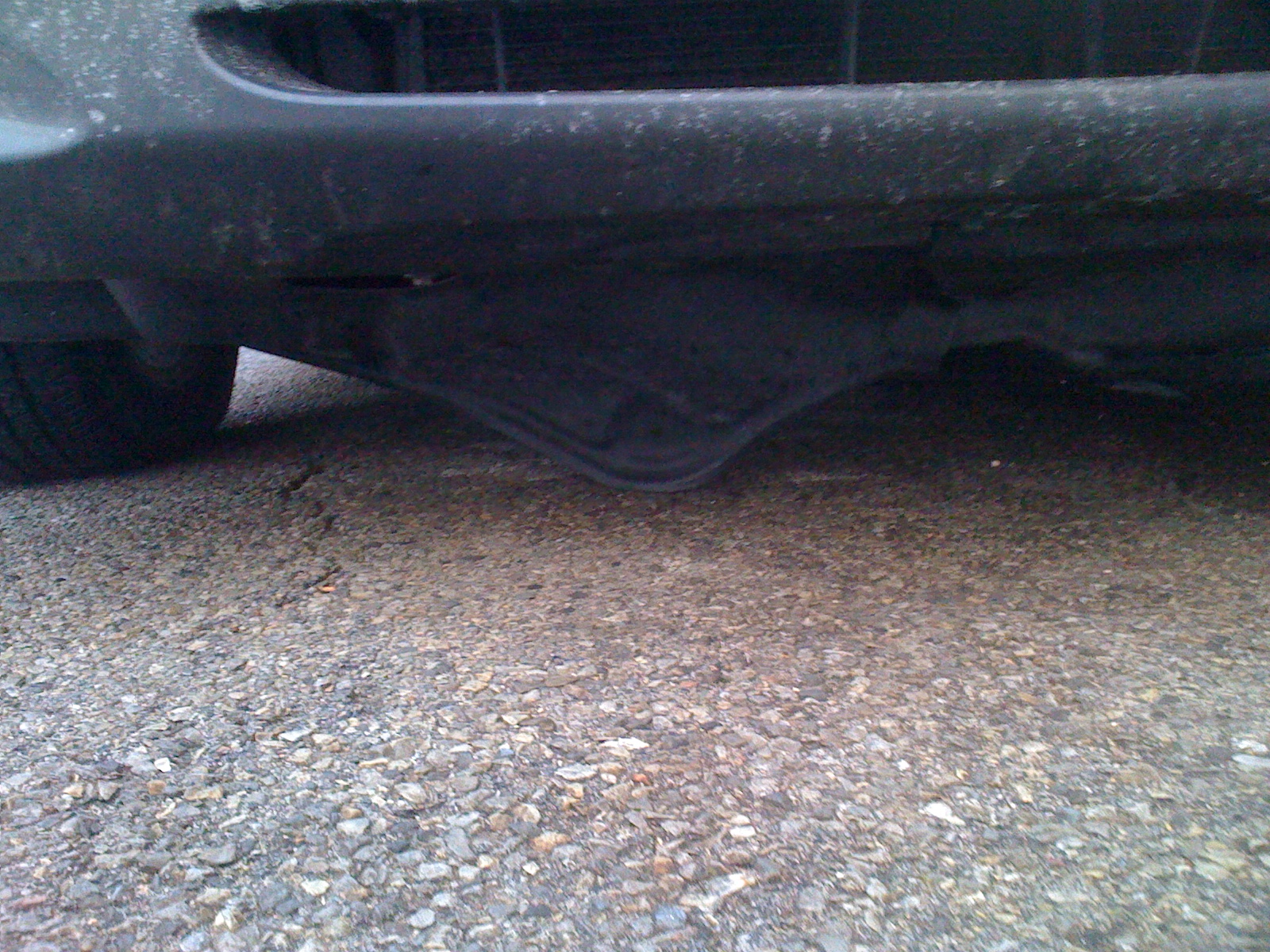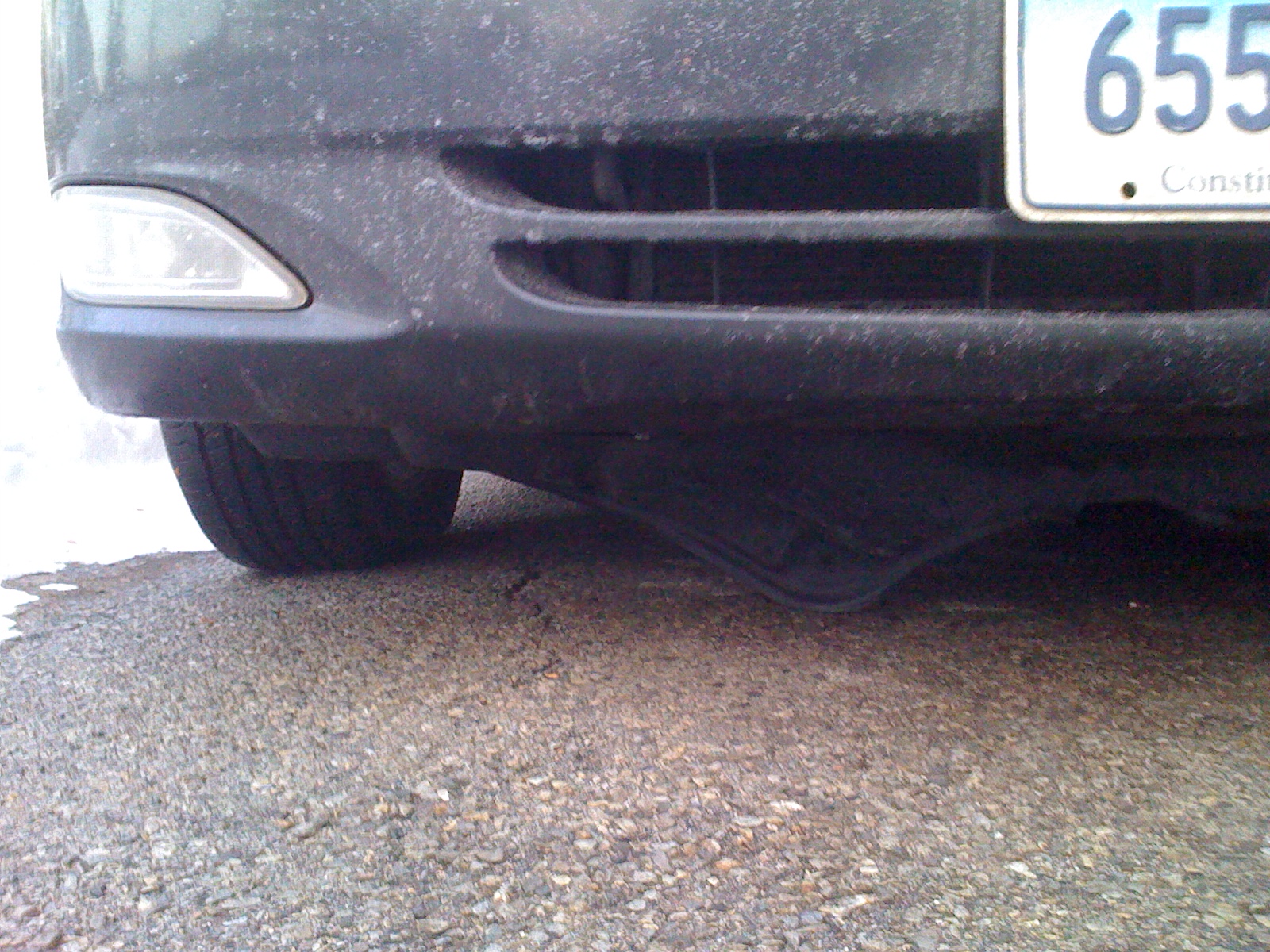 2003 toyota camry, front undercarriage of the car, the hard plastic under the engine keeps coming off and is now rubbing on the ground. How can I fix that?