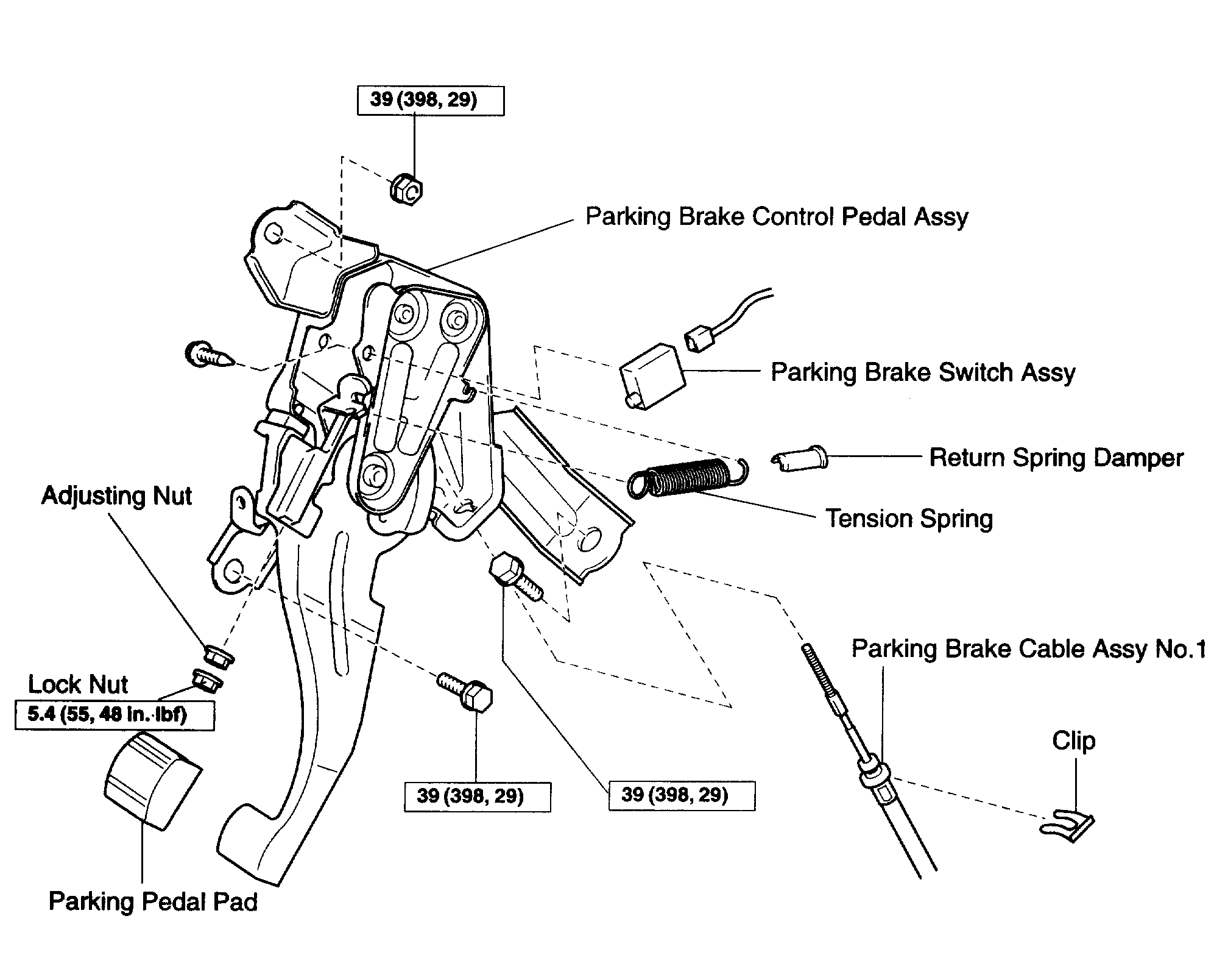 21. INSPECT AND ADJUST PARKING BRAKE PEDAL TRAVEL