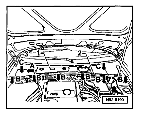 Remove rubber seal -2- in direction of -arrow B-.