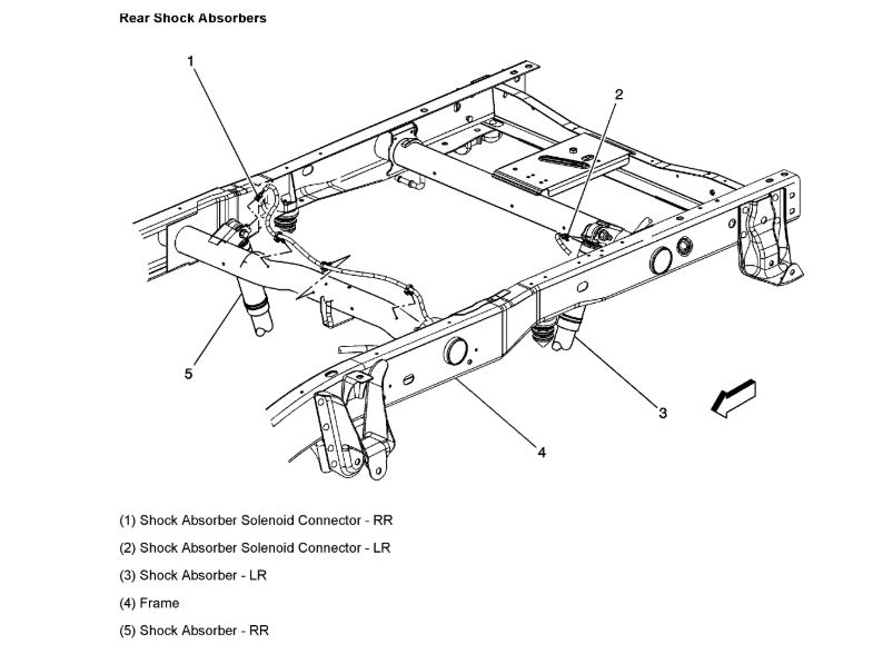 Voltage is supplied to the switch via the ignition 1 voltage circuit from the SEO IGN fuse. When the system is on, the voltage is supplied to terminal A of each shock providing firmer damping. Ground is supplied to terminal B of each shock.