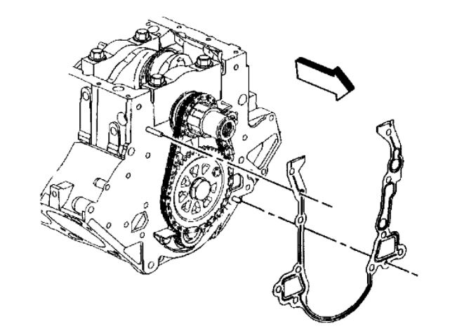 14. Clean the gasket mating surfaces at the timing chain cover, and cylinder block.