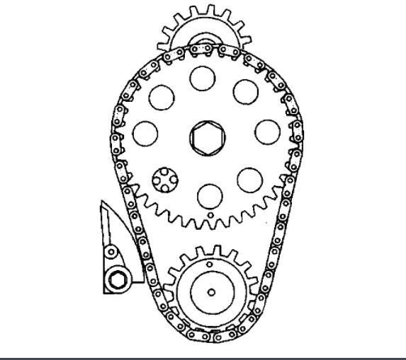 12. Inspect the timing chain for overall in and out movement. Movement should not exceed 25 mm (1 inch).