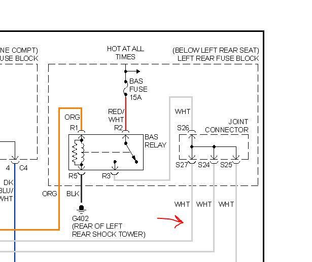 Inspect and test the joint connector located below left rear on left rear fuse block