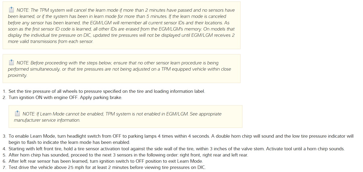 Had my truck at Wal-Mart for tire rotation and balance. They could not set the TMS. How can I set this system on my 2004 Escalade EXT truck?