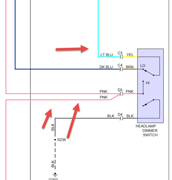 I went under the dash to look for a ground on the left side of the brake pedal but cannot find any. Here is some extra information: At the headlamp on the right side I have twelve volts at connector pin F and H which are battery positive voltage, on the left at pin H the battery positive voltage. I have nothing but lights still come on dim instead of not at all. This car does DRL pin F on the left connector, if this helps