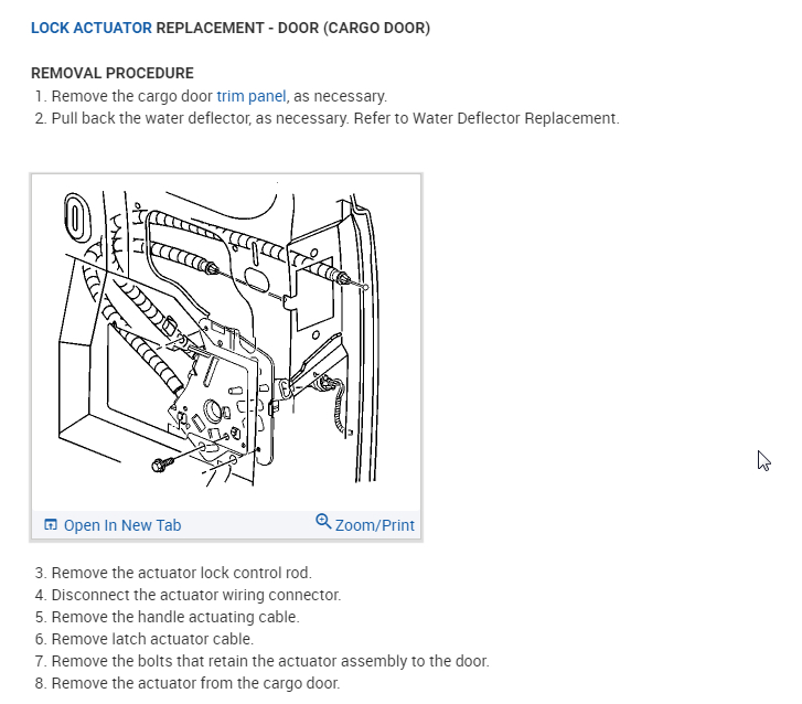 The cargo door will not unlock; I have tried to unlock with the remote, the inside locking switch and manually with a key and none will work. I need to know what likely is the problem (actuator, lock itself, etc) and how to remove the plastic door panel to get access to the lock. As the doors will not unlock, need to remove the panel from the inside without the ability to open the door.