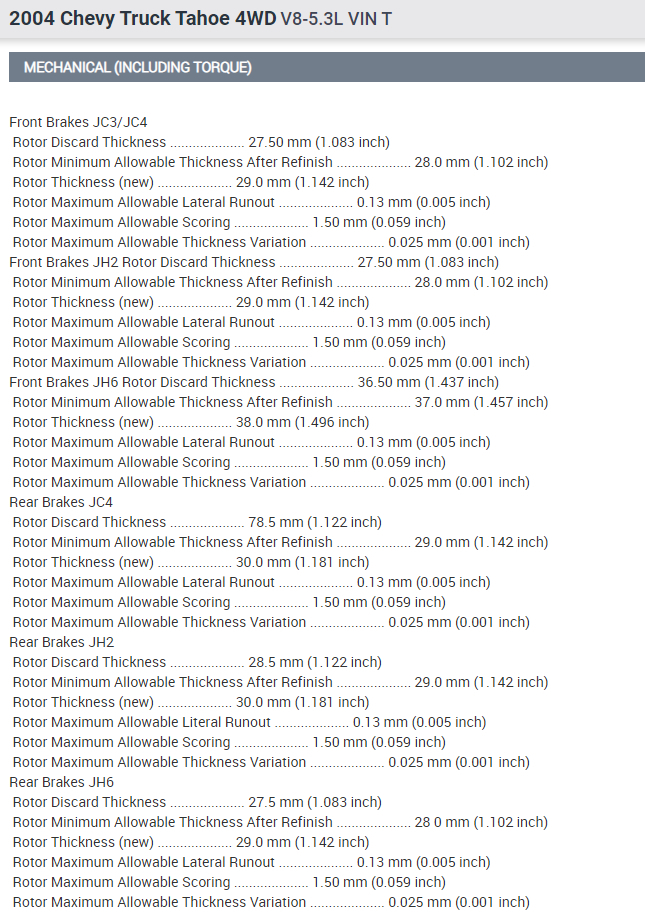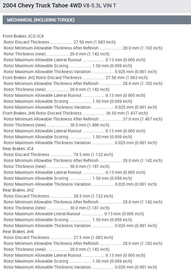 The discard thickness for the front rotors are 27.50 mm (1.083 inch).