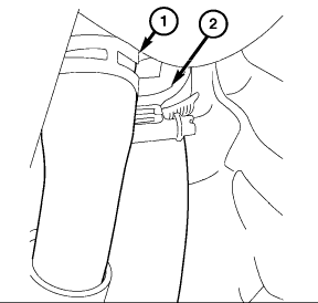 Disconnect the lower radiator (2) hose and the coolant bypass hose (1).