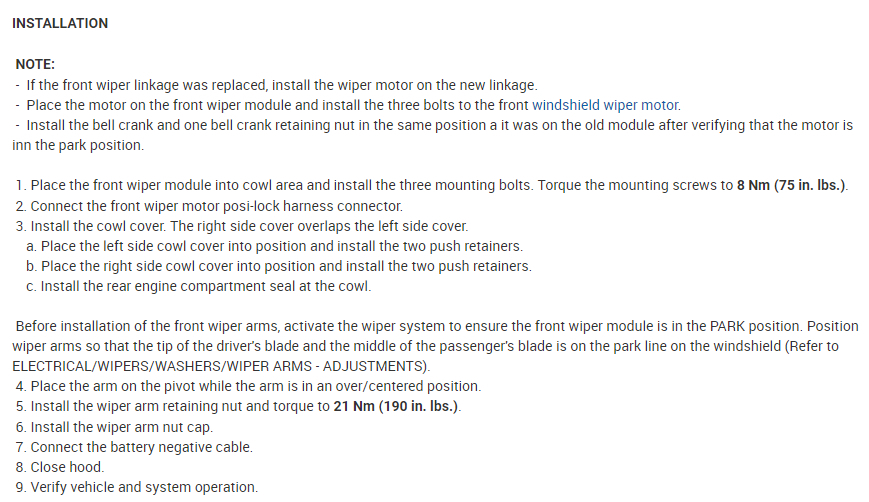 Here is the information you requested. It's possible the windshield wiper motor-module is defective or failed. Here is a tutorial showing how to replace the windshield washer motor-module: