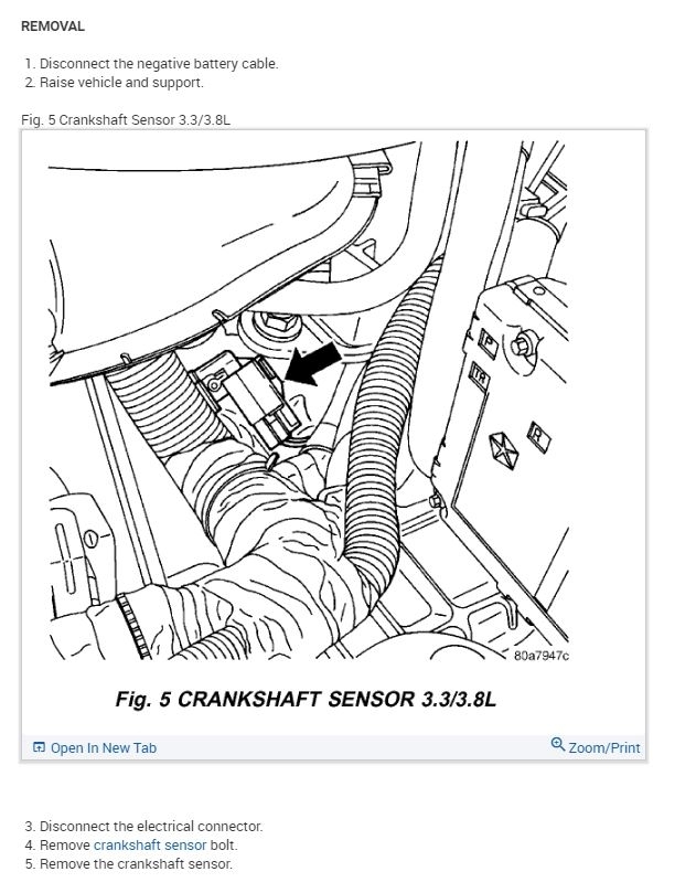 Where is the crank sensor on Chrysler town & country with a 3.8 L engine