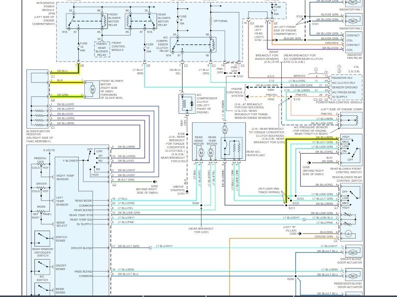 9. Connect the blower motor wire harness connector the blower motor resistor block or blower motor power module, depending on application.