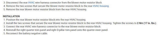 Procedure for blower motor