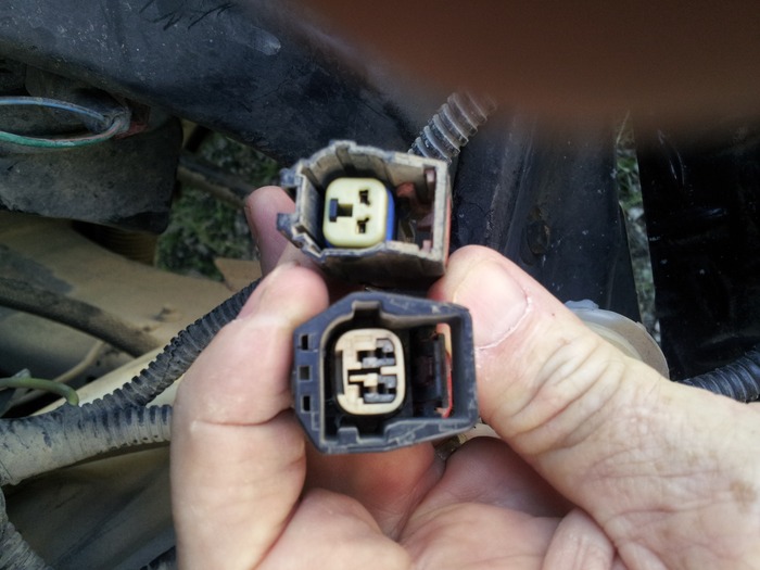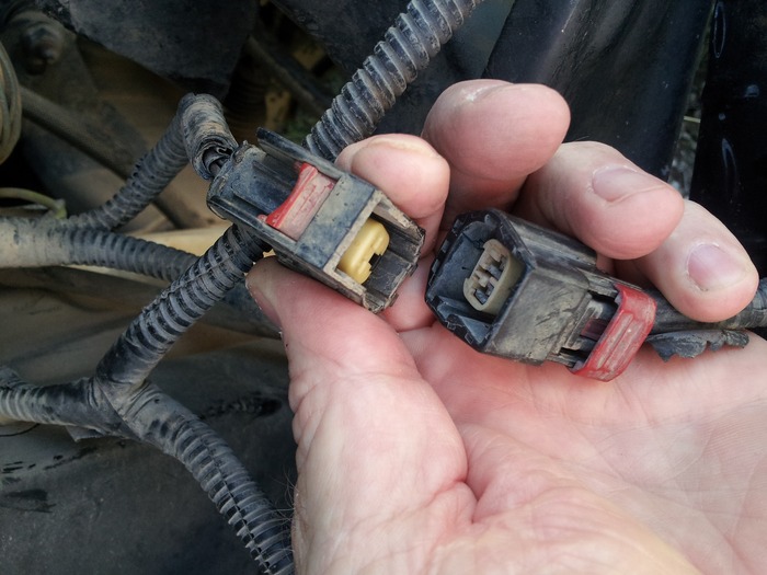 IT'S HARD TO TELL BY THE PICS, BUT IT APPEARS THAT IN YOUR 1ST PIC, THE TOP CONNECTOR IS REALLY DIRTY INSIDE (EVEN THE ALIGNMENT VANES INSIDE) AND LOOKS AS IF IT HAS BEEN DANGLING FOR SOME TIME. NOT CONNECTED TO ANYTHING (MAYBE IT'S AN OPTION YOUR TRUCK DOES NOT HAVE---OR IT "WAS CONNECTED" TO SOMETHING THAT'S FUNCTION HAS NOT BEEN "MISSED" IN A WHILE