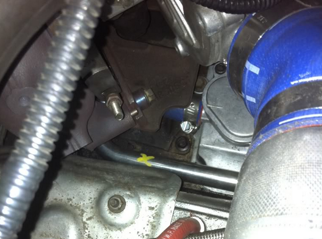 In the picture you can see the blue boot top/right. The red hose in this picture goes to the MAP sensor, yours will most likely be a black hose. You can check that hose out for damage also, and while your at it clean that black hose and brass fitting in the intake. Some times soot will block up the hose and fitting.