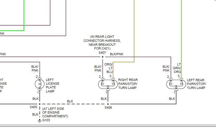 The high mount works everything works except the back brakes power to the turn signal switch but I do not have no diagram I was told it was the turn signal