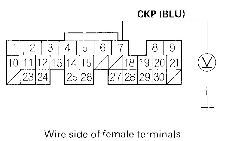 7. Measure voltage between ckp sensor 3p connector terminal no. 1 and body ground.