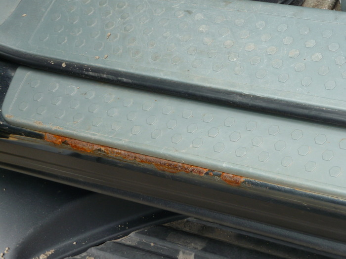 After 3 years the paint bubbles-flaking from rust on the front door rocker-panel/sill plates was determined to be a body warranty repair item. Now it has been repaired: rust removed, repainted. The bodyshop said they squirted some kind of gunk in the frame/sill area to prevent rust from re-occuring. The radio/clock needed re-coded and my rear drivers turn-light was not working. I reset the codes and replaced the light bulb. Today is third time out of the driveway and the turn-light pooped out about the 5th corner. Dealer would not answer if light wires run thru that area and could have been damaged - "just bring in for diagnostic service". No pre-exisiting lighting problems ever before. You may guess from the mileage I am not a roadrunner. Nor am I mechanically savy. I love the rig - it takes me where I need to go. -- BUT I am not enthused with the dealship. They have a monopoly of the major auto-brands and so are basically the ONLY recourse for "factory-auth service" in the state. (Alaska) The bodyshop they use for warranty work is a whole another story.I just want my lights working for more than a drive at a time. Any sugestions? Attached picture is the door-sil before repair.