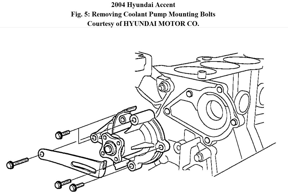 2. Remove the drive belt and engine coolant pump pulley (loosen pulley bolts before removing drive belt).