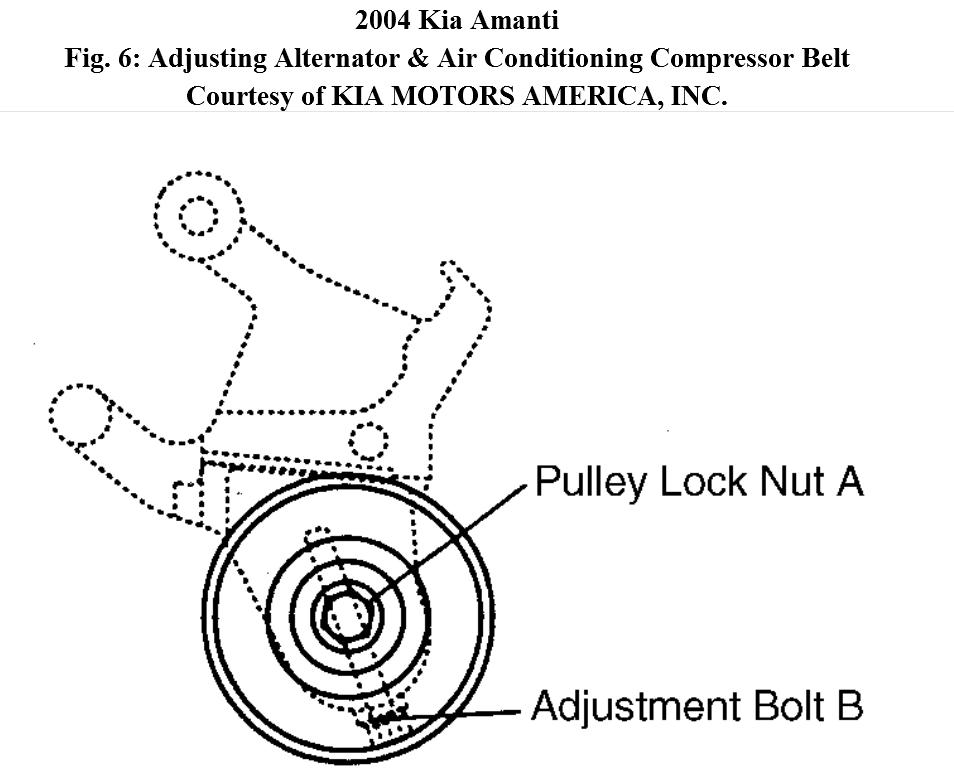 3. Turn adjustment bolt "B" to set belt tension to specified deflection.