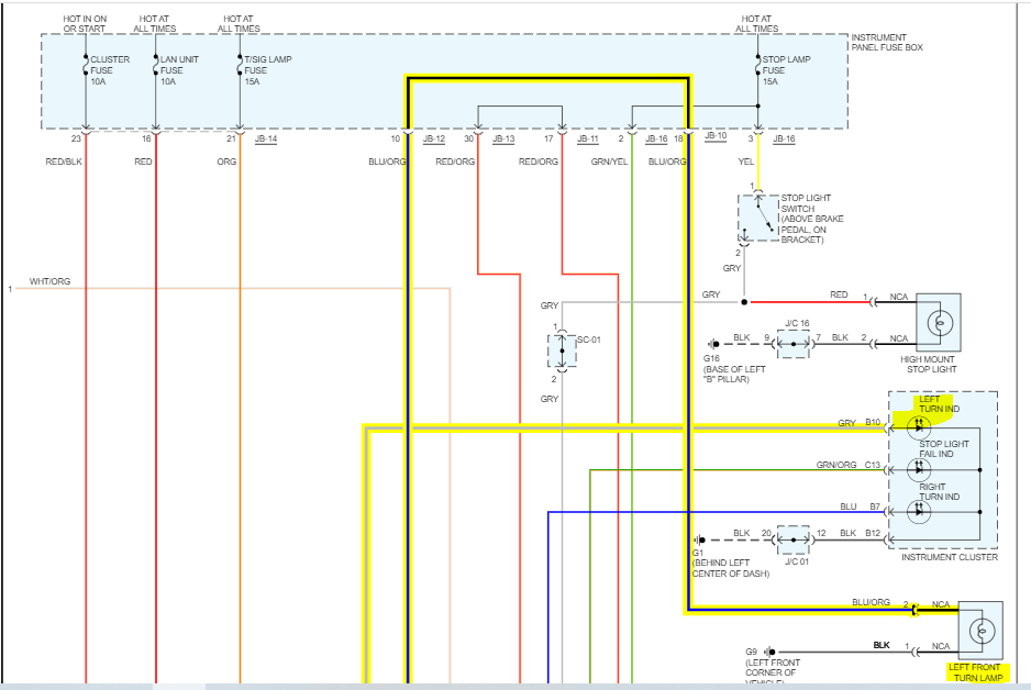 I've examined the bulb in the left rear and it looks fine. (It's a regular 2357A incandescent.)