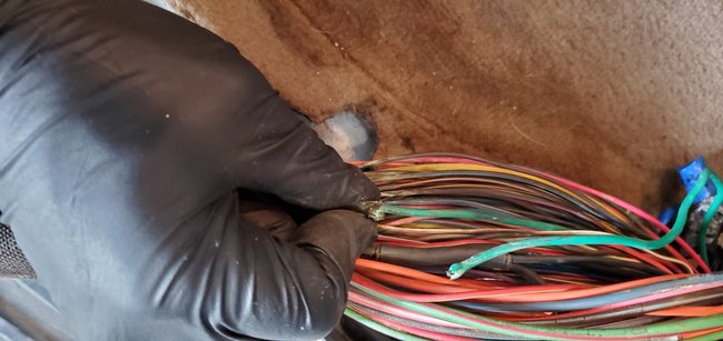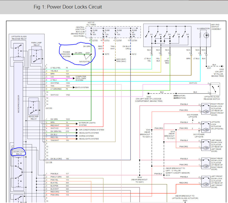 Looked at all wiring harnesses inside driver door, under dash on both sides, and at both doors at hinge location. No damaged wires found.