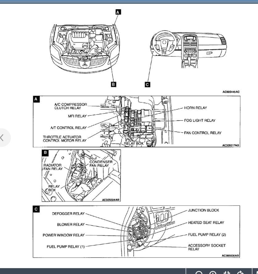 I am attaching the info below from the manual that will help with testing the relays as well and the location of each of the relay boxes.