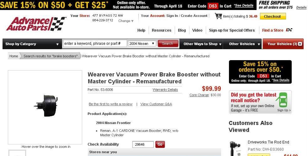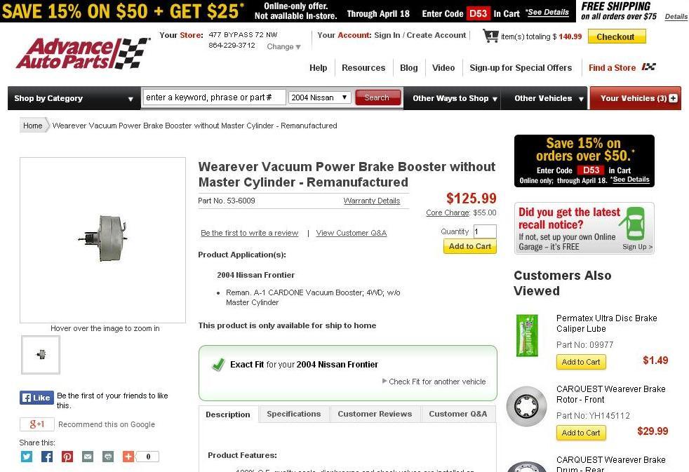 the one you need is $125 w/ $55 core (which you will get back when you turn in the old one) how's $40 off of the original $125 sound?