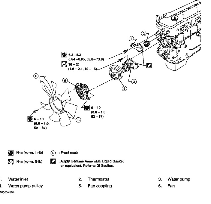 Fig. 1: Exploded View Of Water Pump Components Including Torque Specs