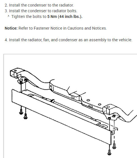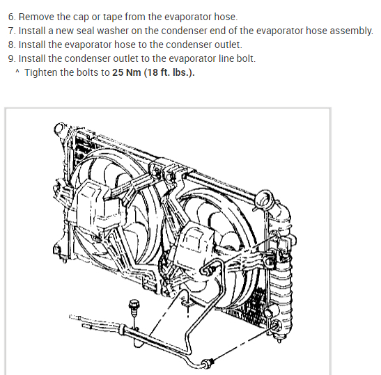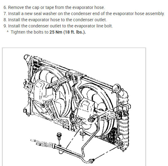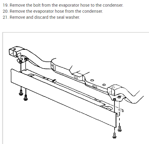 After the repair you will also have to recharge the A/C system since you had to disconnect the lines to replace the radiator. Here is a tutorial showing how to recharge the system: