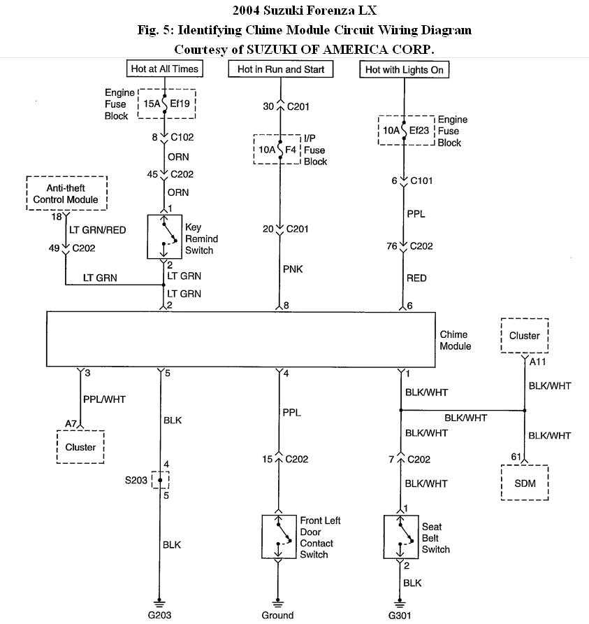 The chime module is located above the instrument panel fuse block and will sound in order to bring attention to one or more of the following conditions: