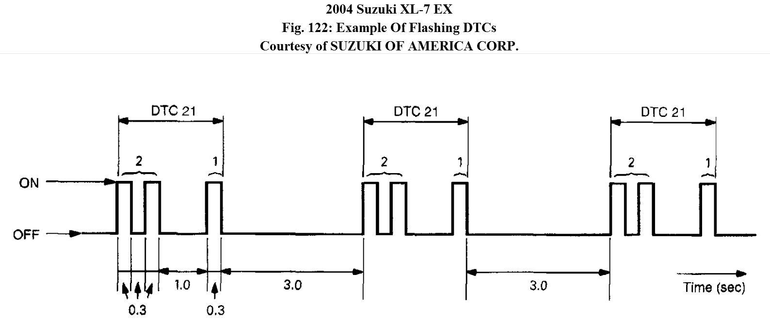 L When more than 2 DTCs are stored in memory, flashing for each DTC is repeated three times starting with the smallest DTC number in