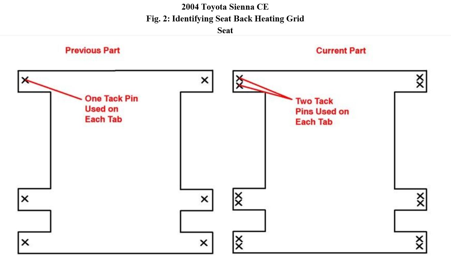 Some 2004 model year Sienna vehicles may experience a condition where the driver or passenger seat heaters do not operate. The following repair procedure has been made available to correct this concern.