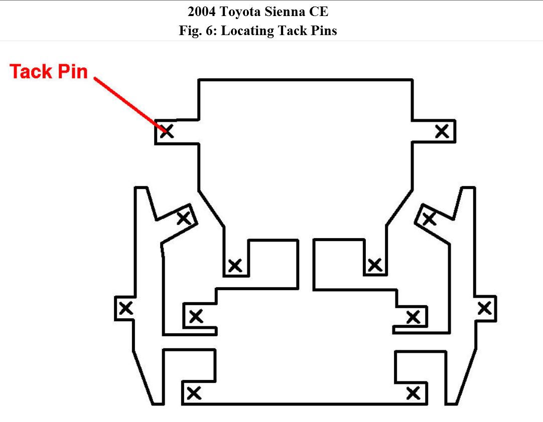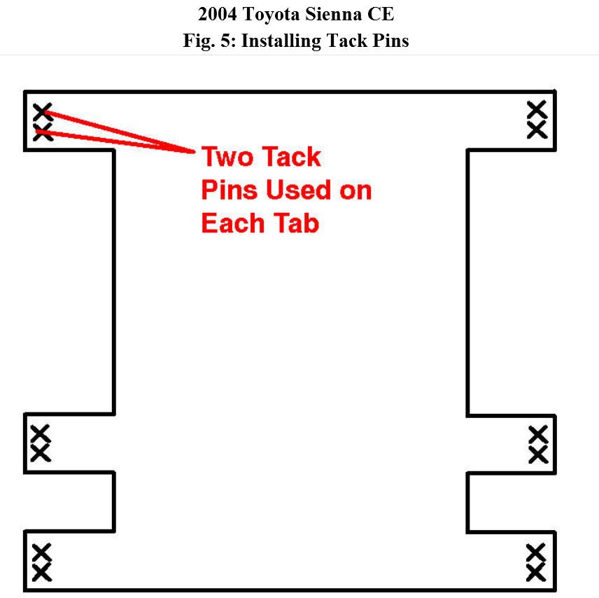 B. Install two (2) tack pins per tab for a total of 12 pins.