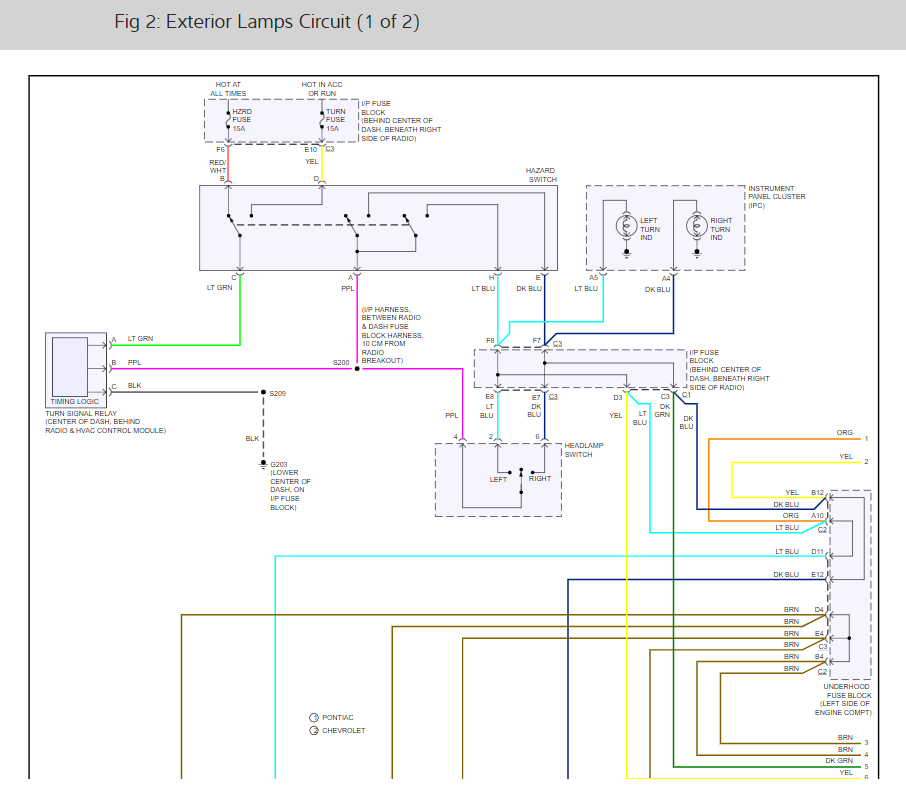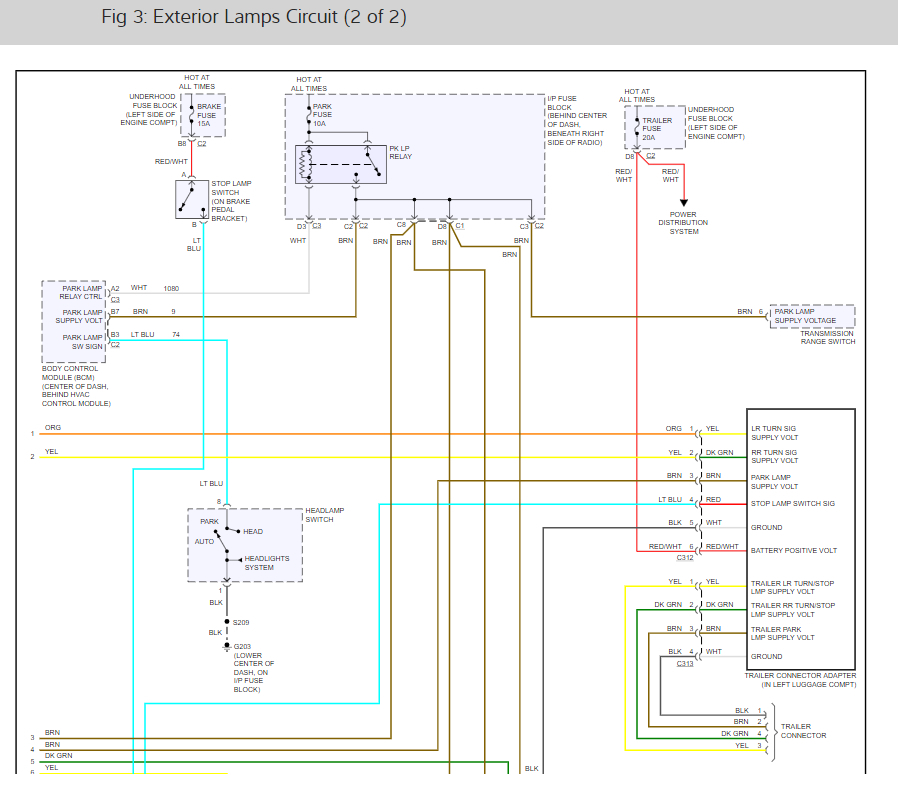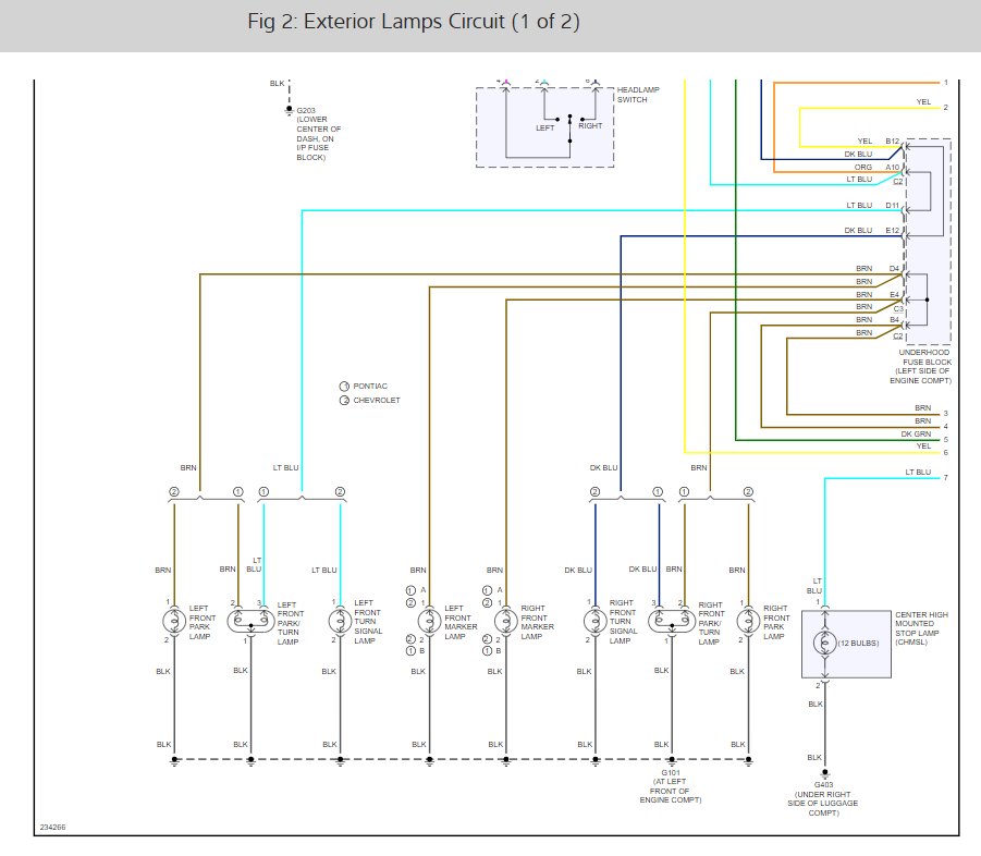 My dash lights, brake lights, parking lights, and fog lights are not working. The head lights, interior lights, and turn signals front and back are working. Is it all on the same fuse and which one is it then?