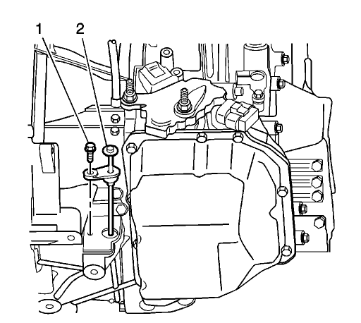 Remove the transaxle fluid level indicator bolt (1) from the transaxle.