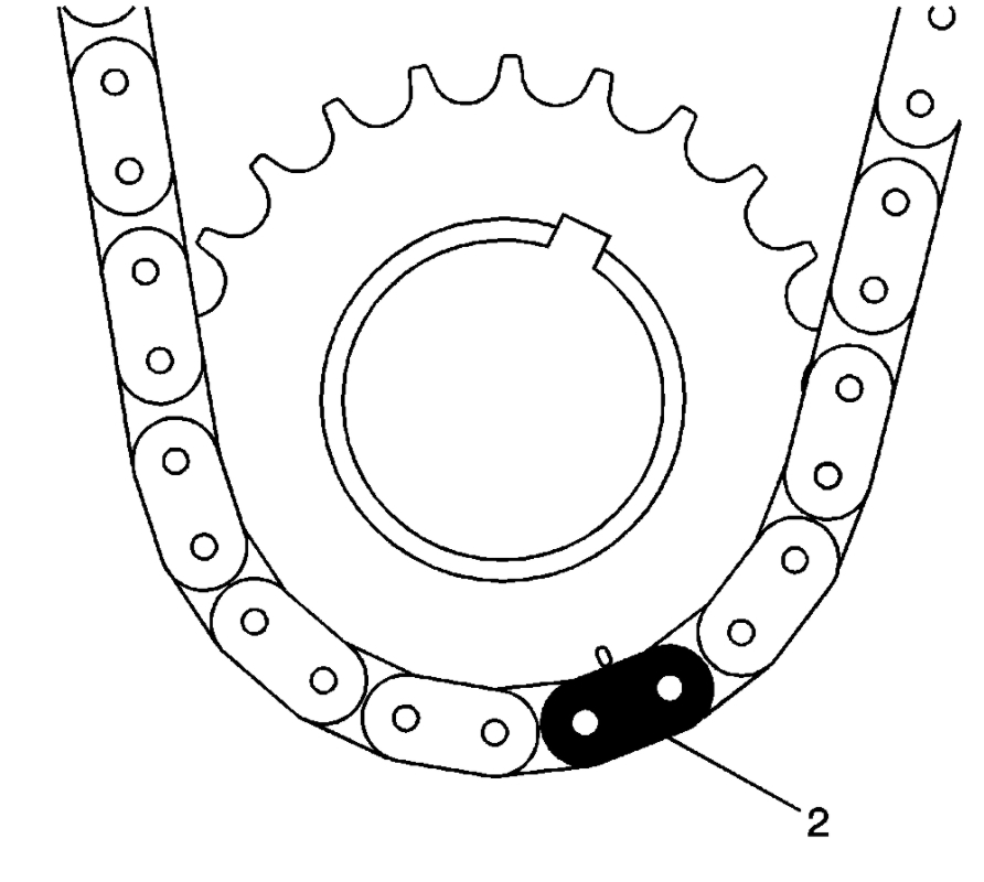 CAUTION:Beginning with the 1998 model year, the timing chain on the LD9 (VIN T) Twin Cam Engine is different from the chain found on earlier versions of this engine, and is not to be replaced with a timing chain from earlier model year engines. The timing sprockets were also changed beginning in 1998, and the shape of the chain links matches the sprockets. Engine damage may result if the wrong timing chain is used. The timing chain and the crankshaft sprocket must be marked so that they are reinstalled in the same side facing out at the time of assembly.