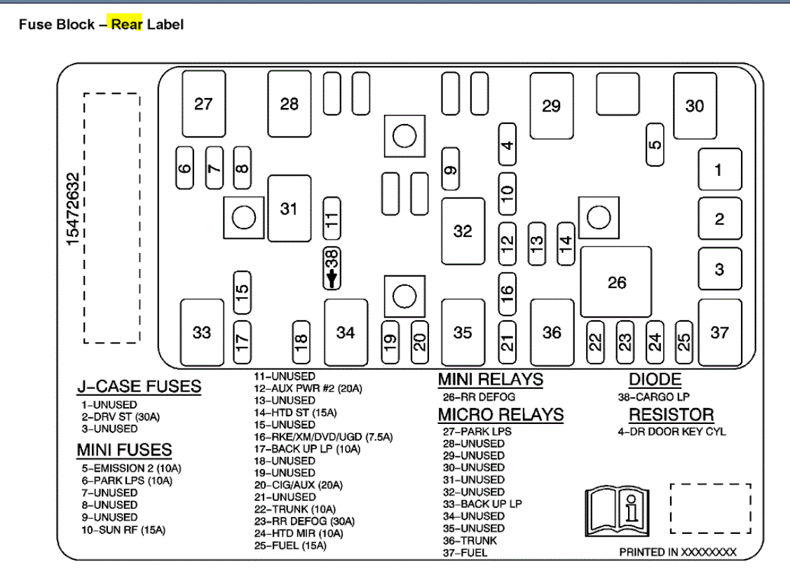 If you look at the attachments below, they provide the fuse box orientations and what each fuse is for.