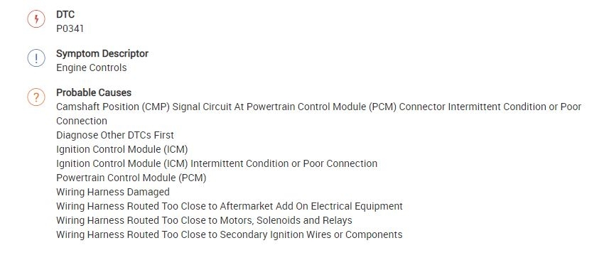 DTC P0341 Camshaft Position (CMP) Sensor Performance