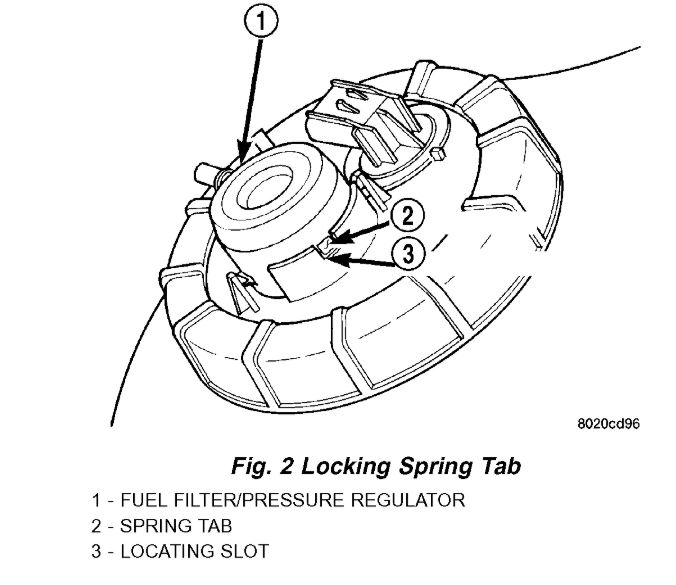 4. Depress locking spring tab on side of Fuel/Regulator (Fig. 2) and rotate 90° counter-clockwise and pull out.