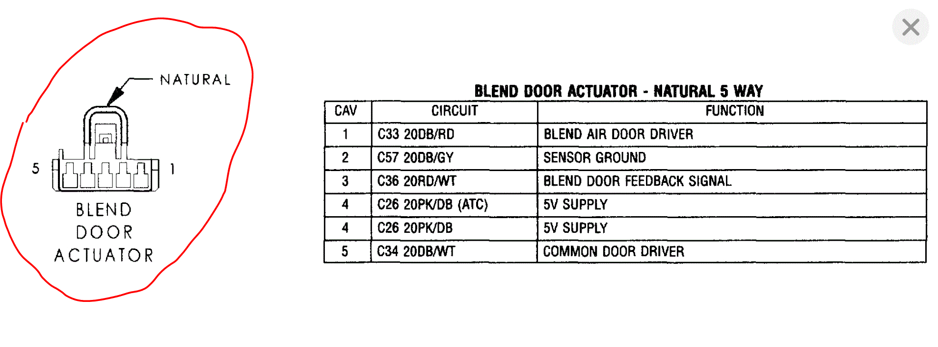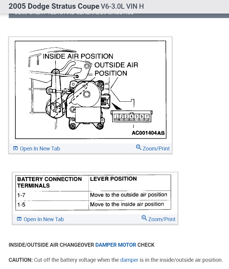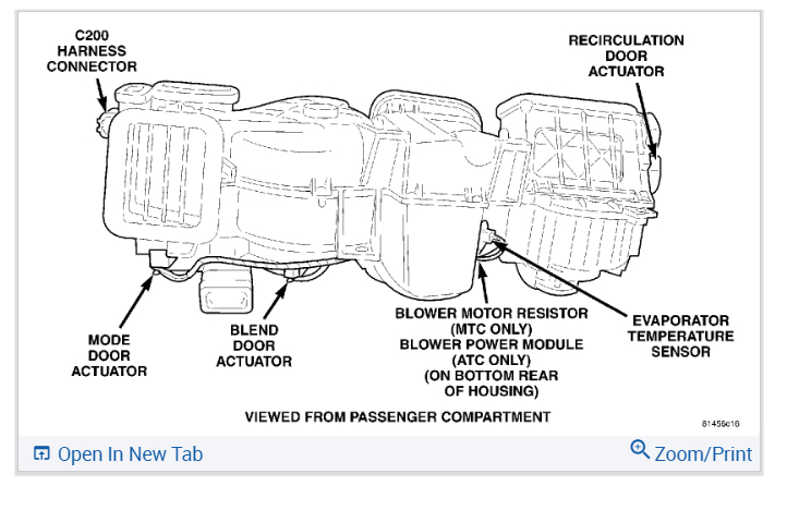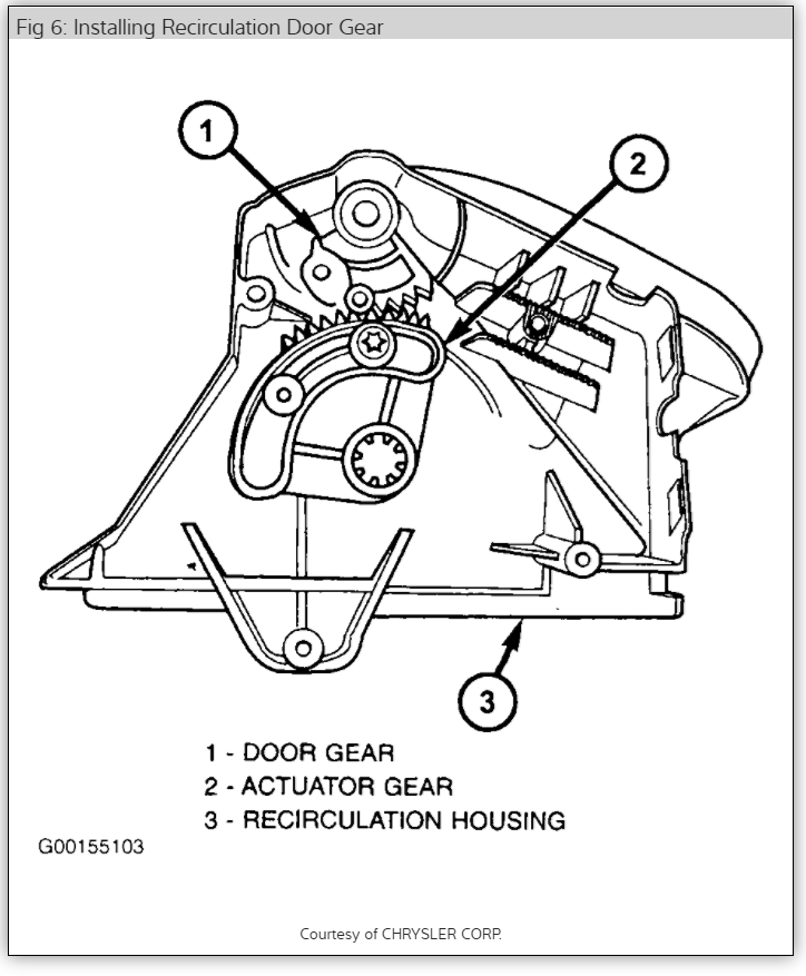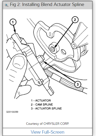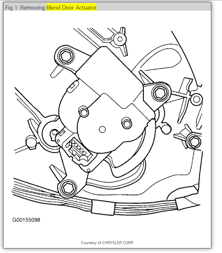 NOTE: Prior to part replacement, re-calibration the HVAC actuator. Disconnecting negative battery cable for 60 seconds. This will automatically initiate the software calibration procedure.