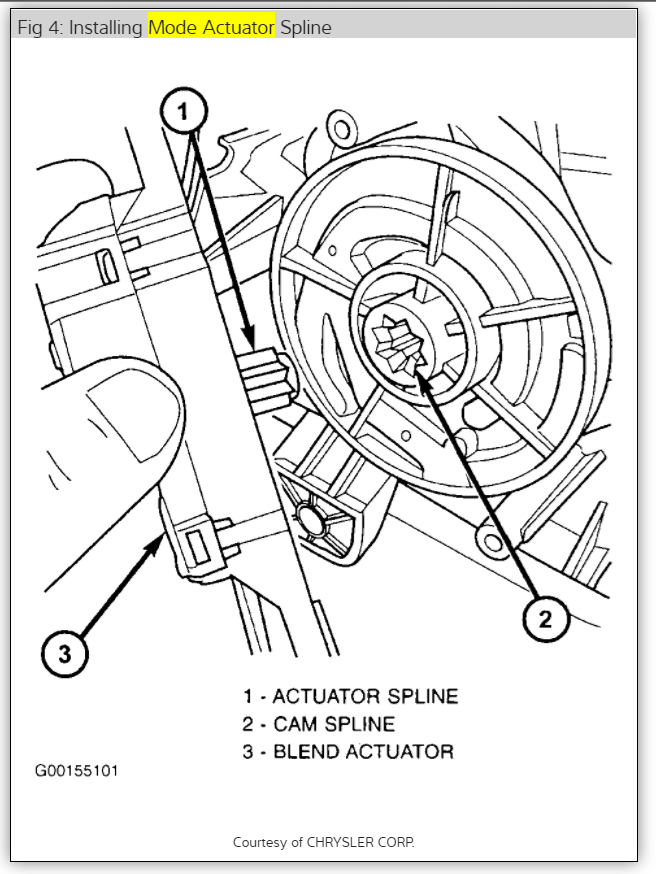 1. Install mode door actuator on the housing, make sure spline shaft is positioned properly with the cam.