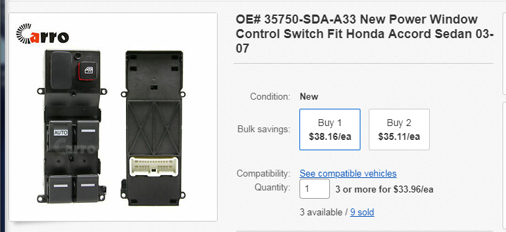 I recently ordered a drivers master switch to change in my car. But the switch looks different. So in trying to go on line and see the 2005 Honda Accord Sedan drivers manual it shows a switch with power windows, power side mirror controls and power locks. My car doesn't have power side mirror controls (manual knob up near drivers door jamb) and doesn't have power door locks (only manual).
