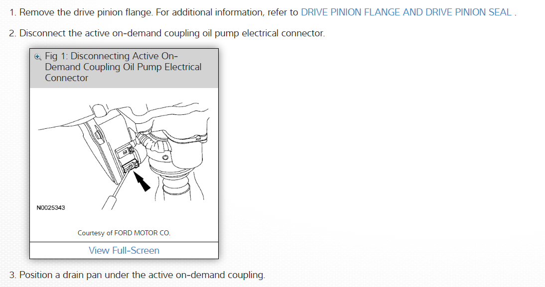 Don, t see drain plug or fill plug on rear axle of my all wheel drive ford 500 they show no information in the owners Manuel of this vehicle I looked at the rear end and all bolts look the same normally the drain plug is bigger also the fill hole is a bigger bolt than the other bolts on the differential