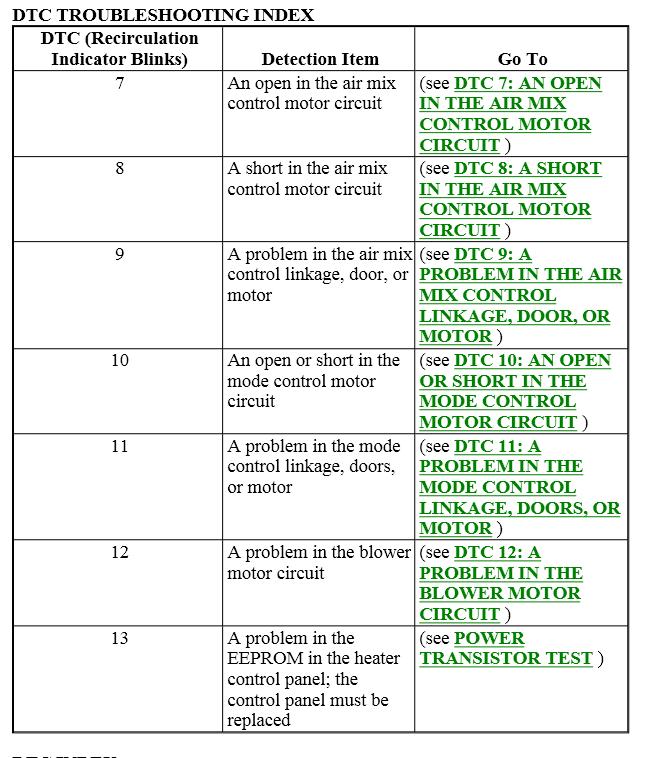 I made Heater Control Panel self-diagnosis procedure and I got DTC = 17 (Recirculation Indicator blinks 17 times).