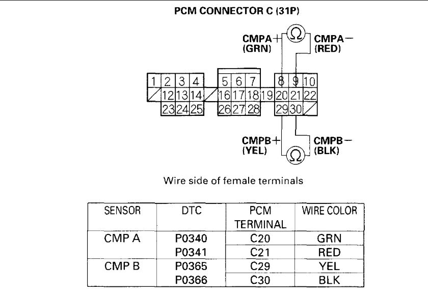 Camshaft Position (CMP) Sensor B Sensor Wires Shorted